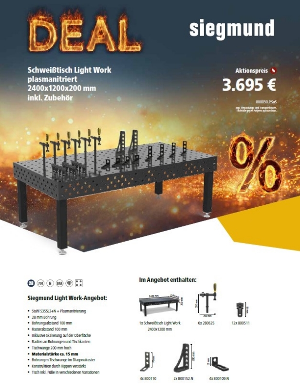 Schweißtisch, SIEGMUND – System 28 Prof.Ext.8.7-2400×1200 PDRSWBaujahr: NEULagernummer: 4051971 Details » Anfrage » Sonderposten