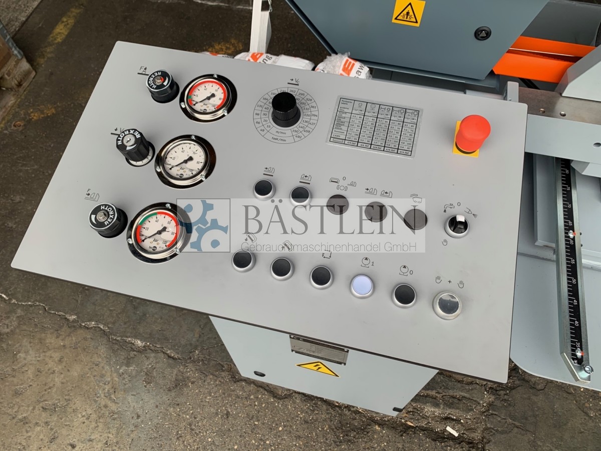 hydraulische Schnittdurck- und Vorschubregulierung. Anzeige Senkgeschwindigkeit