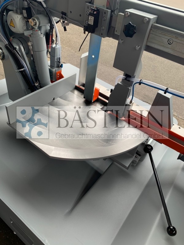 nach Skala. Der Gehrungsdrehpunkt ist Schnittpunkt zwischen Sägeband und